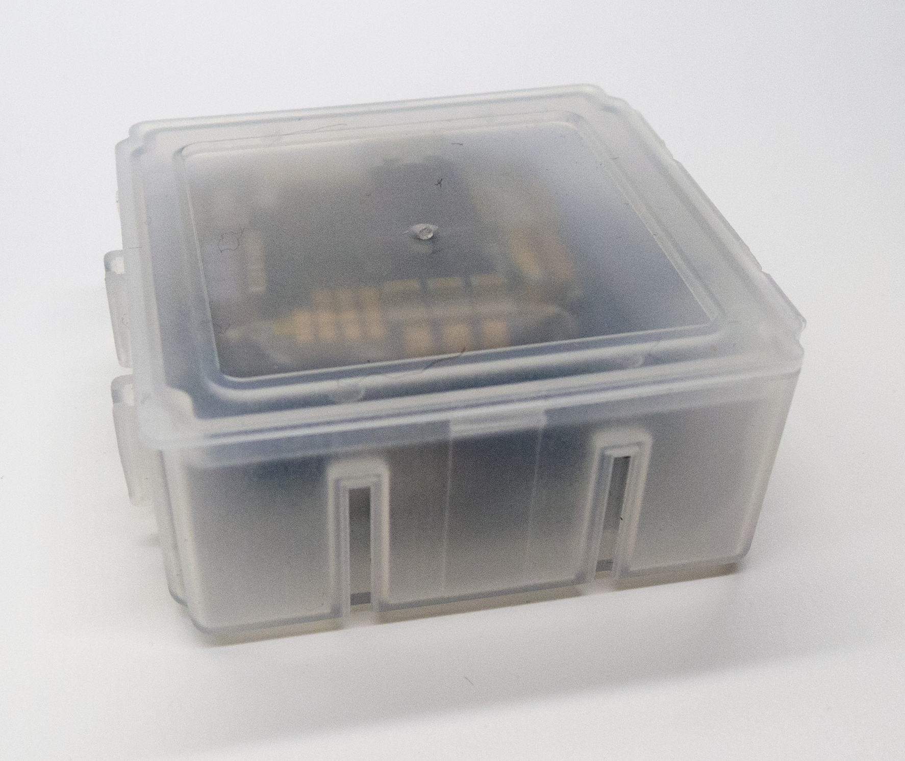 The plastic case is hard to open but if you buy two or more you can stack them together.